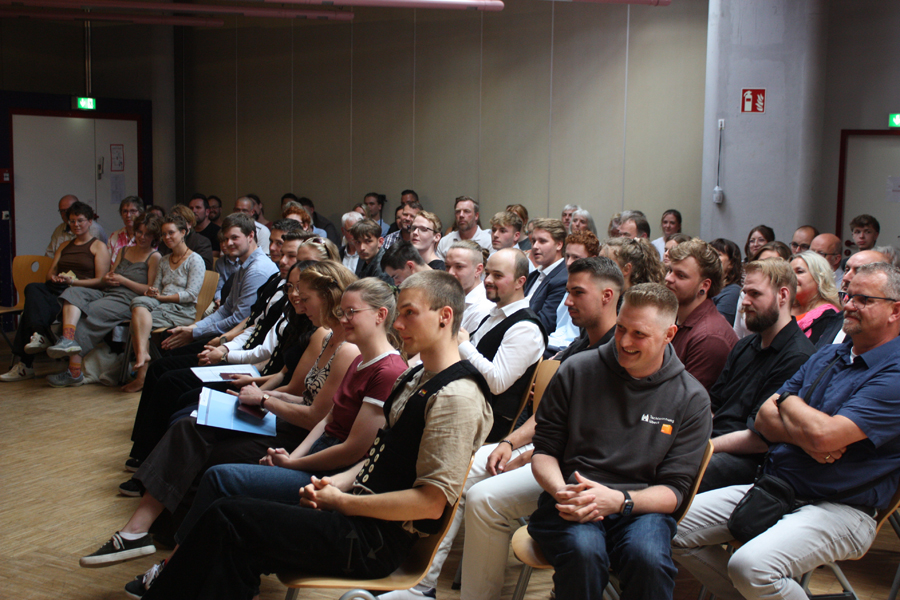 Obermeister Stamer wies vor der Verleihung der Gesellenbriefe noch einmal darauf hin, dass KI eben noch kein Handwerk ausüben könne. Die Tischlerin / der Tischler sei zum Glück noch nicht zu ersetzen. Das soll auch so bleiben.